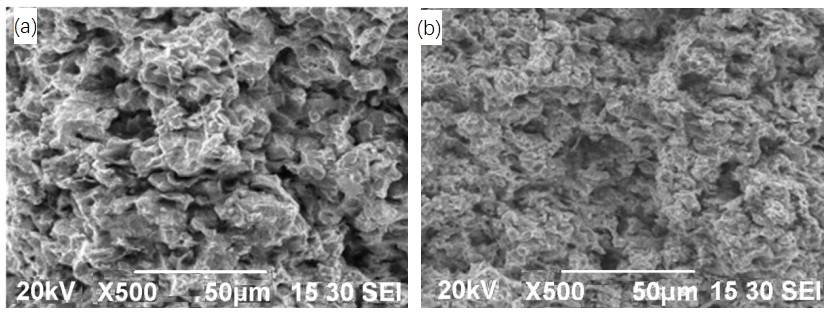 Der Bruch bei der mechanischen Mischmethode ist spröde, die Verstärkungsphase fällt leicht ab und die Grenzflächenbindungsstärke ist gering.