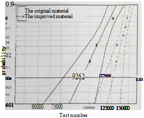 Wie in Abbildung 3 dargestellt, wurde die elektrische Lebensdauer des verbesserten Materials deutlich verbessert: 95 % des verbesserten Materials betragen 163.668 Zyklen, 92.397 Zyklen des Originalmaterials.
